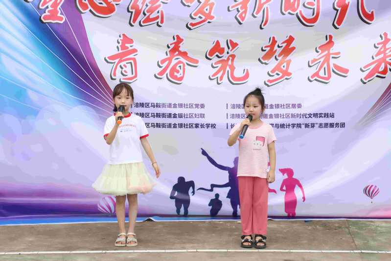 7月15日,长江师范学院数学与统计学院“新芽”志愿服务团前往金银社区开展“扬帆启航新时代,童心筑梦向未来”文艺汇演活动。