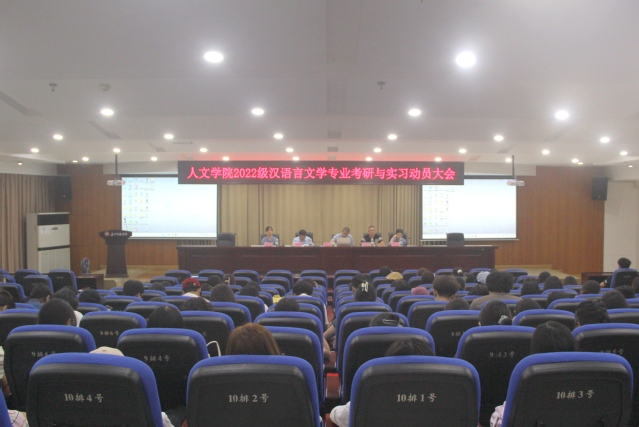 6月16日,人文学院在鉴湖学术报告厅召开2022级汉语言文学专业考研暨实习动员大会。该院院长彭福荣,副院长胡建华,学校教务处实践教学科科长李文博,该院中国语言文学系主任白瑞芬及2022级汉语言文学专业全体学生参加。