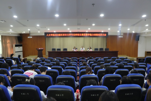 9月24日,人文学院在鉴湖学术报告厅召开2023级汉语言文学专业师范生课堂教学能力综合训练动员大会。该院院长彭福荣,中国语言文学系系主任白瑞芬,年级辅导员马亚菊及全体2023级汉语言文学专业学生参加。会议由马亚菊主持。