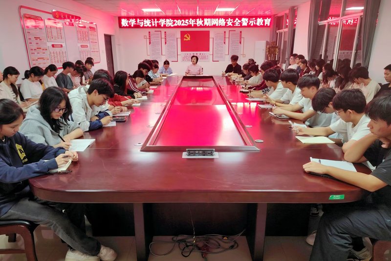 10月16日,数学与统计学院在钩深楼附楼216会议室开展2025年秋期网络安全警示教育活动。数学与统计学院学工办主任姜丽担任主讲人,全体学生干部参加。