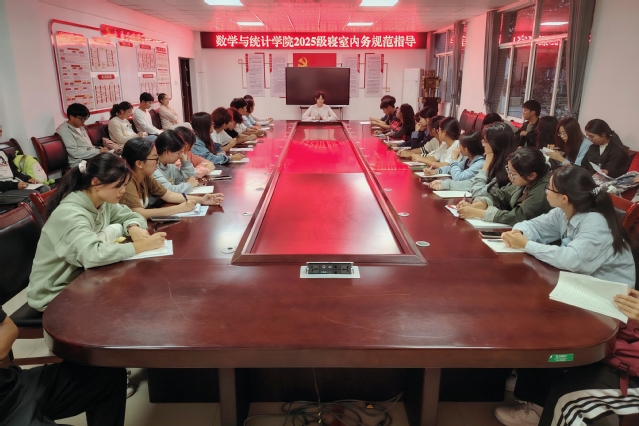 10月15日,数学与统计学院于钩深楼附楼216会议室开展2025级寝室内务规范指导,学院学生社区管理部主要负责人李青蔚担任主讲人,全体2025级非混寝寝室长参加。