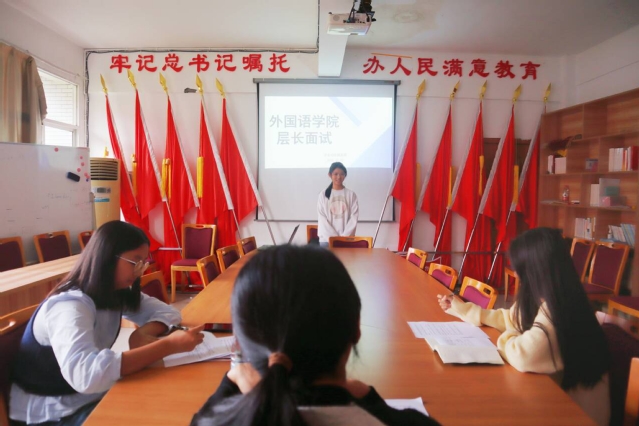 为加强学生社区管理,提升学生自我管理与服务能力,推动文明宿舍建设,10月20日,外国语学院于钩深楼515活动室开展2025级学生宿舍层长招聘面试活动。2025级辅导员陶歆妍出席本次活动并担任面试官,学生社区服务部相关负责人及报名学生共同参与。