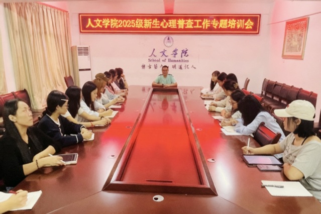 10月16日,人文学院于钩深楼南楼414会议室举行2025级新生心理普查工作专题培训会。此次培训会由学院心理专员、2025级辅导员曾兴智主讲,2025级全体新生代班参加。