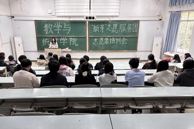 10月31日,数学与统计学院于正心楼02阶梯教室开展“新芽”志愿服务团志愿者培训会。学院青年志愿者服务团主要负责人胡宇担任主讲人,“新芽”志愿者服务团全体成员参加。