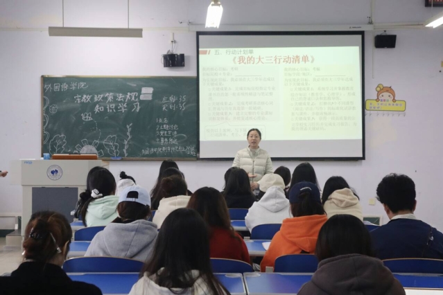 为引导大三学生明确职业方向,提升就业竞争力,11月2日,外国语学院2023级英语师范2班于诚意楼501开展以“预见未来,织就蓝图”为主题的特色班会。辅导员冉娟出席此次班会,全班学生积极参与。
