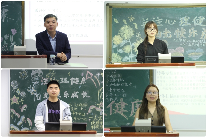 为进一步加强新时代学生心理健康工作,提升学生心理健康素养,促进学生身心健康、全面发展。10月19日,人文学院在崇礼楼、正心楼教室组织开展“关注心理健康,阳光快乐成长”主题班会,2023级、2024级、2025级全体学生参加。