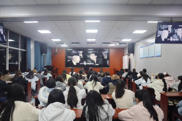 为感悟劳模的奉献底色,拓宽对人生价值的认知,11月10日,外国语学院于钩深楼501全境实训室举办《钱学森》劳模精神电影观看活动,全体学生积极参与。