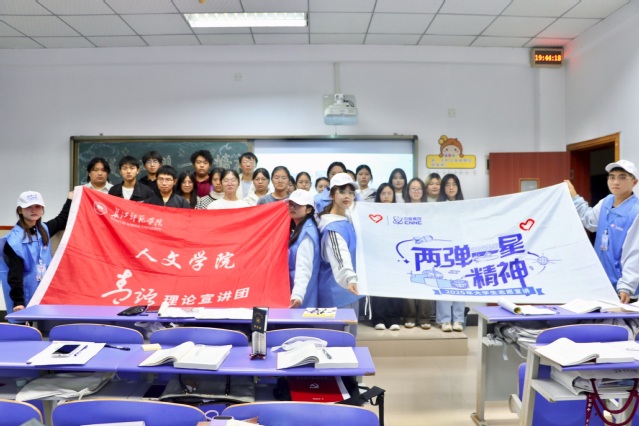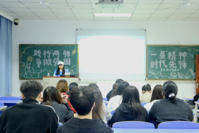 为深入学习宣传贯彻习近平新时代中国特色社会主义思想,落实“强国复兴有我”群众性主题宣请勿出现邪教相关内容育活动相关要求,引导青年学生大力弘扬“两弹一星”精神,11月2日,人文学院“青语”理论宣讲团走进班级宣讲“两弹一星”精神。