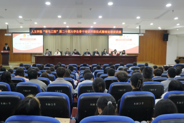 为深入学习贯彻习近平总书记关于青年工作的重要思想和党的二十届四中全会精神,努力培养一批政治强、学习好、思维新、视野广、自律严的大学生骨干。11月7日,人文学院在鉴湖学术报告厅举行“青马工程”第二十期大学生骨干培训开班仪式暨第一场理论培训讲座。学院党委书记邓清华,团委书记、学工办主任、预科基地主任王勇,年级辅导员曾兴智、戴欣洋、孙秀丽、罗燕、宋虹摇、曾小芩及全体培训班学员参加。开班仪式由学院党委副书记、副院长王晓晖主持。
