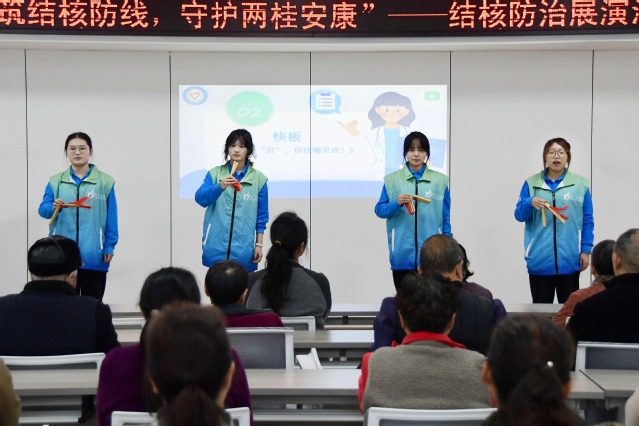 活动在欢快的舞蹈串烧和优美的国风舞《相思遥》中拉开帷幕。快板《结核杆“君”,你往哪里逃!》以朗朗上口的节奏,将结核菌传播途径、预防要点“唱”进居民心里。