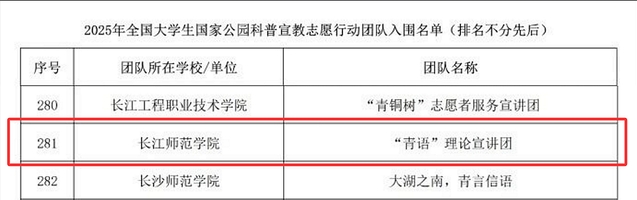 学校“青语”理论宣讲团成功入选2025年全国大学生国家公园科普宣教志愿行动团队