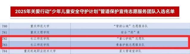 11月12日,团中央青年志愿者行动指导中心、中国少年儿童新闻出版总社有限公司联合国家石油天然气管网集团有限公司共同发布《关于遴选2025年关爱行动“少年儿童安全守护计划”管道保护宣传志愿服务团队的公告》,我校外国语学院“童心护航”志愿队、外国语学院和大数据与智能工程学院共同组成的青春护航志愿服务队成功入选。