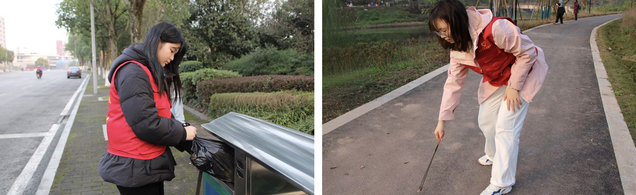 在学校鉴湖环路,志愿者们手拿夹钳、垃圾袋,仔细清理湖边矿泉水瓶、塑料袋、泡沫塑料、易拉罐、烟头等废弃垃圾,按照垃圾分类标准进行投放,充分展现出青年学生热情奉献、团结合作的精神风貌。经过志愿者们的共同努力,校园环境焕然一新。