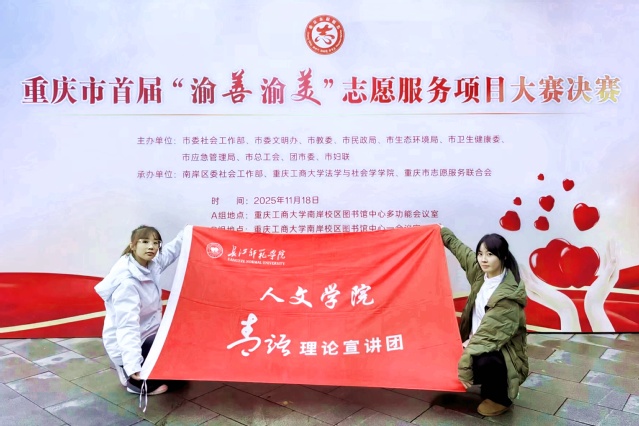 近日,由市委社会工作部、市委文明办、市教委、市民政局、市生态环境局、市卫生健康委、市应急管理局、市总工会、团市委、市妇联共同举办的重庆市首届“渝善渝美”志愿服务项目大赛决赛公布获奖项目名单,我校人文学院“青语”理论宣讲团荣获铜奖。