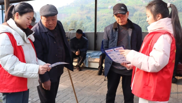 冬意渐浓,关怀不减。为守护社区老年群体财产安全,筑牢反诈防线,12月28日,绿色智慧环境学院曙光青年志愿者服务团携手权益服务部,走进重庆市涪陵区高岩口社区开展“暖冬志愿”活动,用青春力量为老人送上安心暖意。