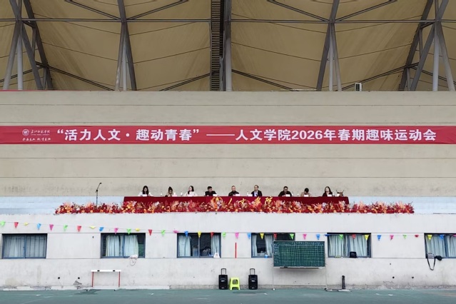 春和景明,万象更新;活力涌动,青春飞扬。3月27日,人文学院在行健体育场举办“活力人文·趣动青春”2026年春期趣味运动会。学院党委书记邓清华,政治学与行政学系主任杨兴坤,学工办主任、团委书记、预科基地办公室主任王勇,年级辅导员曾兴智、戴欣洋、马亚菊、宋虹摇、曾小芩及2024级、2025级全体学生参加。
