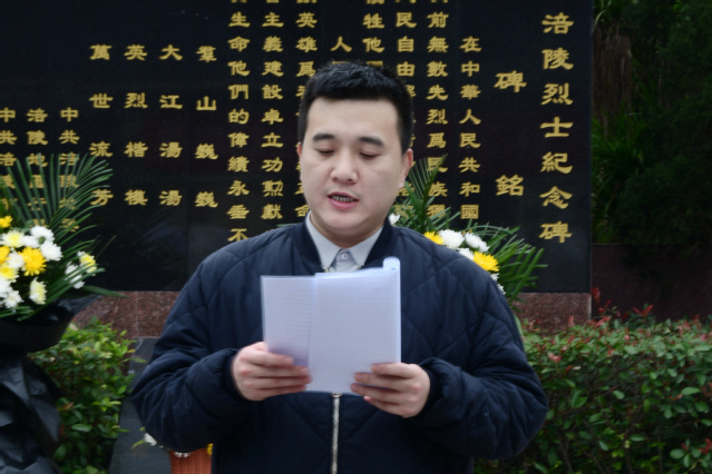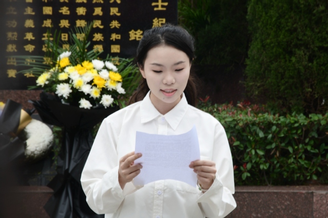 默哀毕,武尧老师带领全体党员重温入党誓词,坚定党员信念与责任担当,并发表讲话,号召同学们传承英烈精神,以青春之名担时代之责。学生代表石小倩现场讲述烈士事迹,带领大家重温峥嵘岁月,感悟信仰力量。