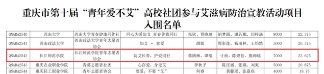 近日,重庆市第十届“青年爱不艾”高校社团参与艾滋病防治宣教活动项目评审入围名单揭晓,我校青年志愿者协会申报的“防艾长青 护爱同行”项目成功入选。